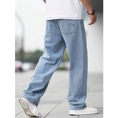 SHEIN Teen Boy Fashion Casual Blue Denim Basic Simple Loose Straight Leg Jeans For Boys Costume Dailywear And The Four Seasonsr Teen Boy Clothes